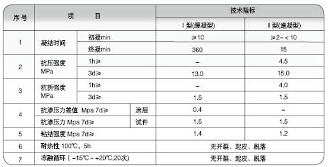 I型(缓凝型)主要用于潮湿和微渗基层上作防水抗渗。
